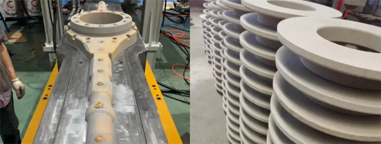 Принцип піску та природний гравітаційний ефект смоляного піску; Форма оснащена швидким і гладким методом вихлопу з трьох сторін одночасно. Процес виготовлення ядра може заповнити порожнину форми в найкоротший час. Сердечок з піском щільне, повне і гладке, а вихід виготовлення ядра високий.